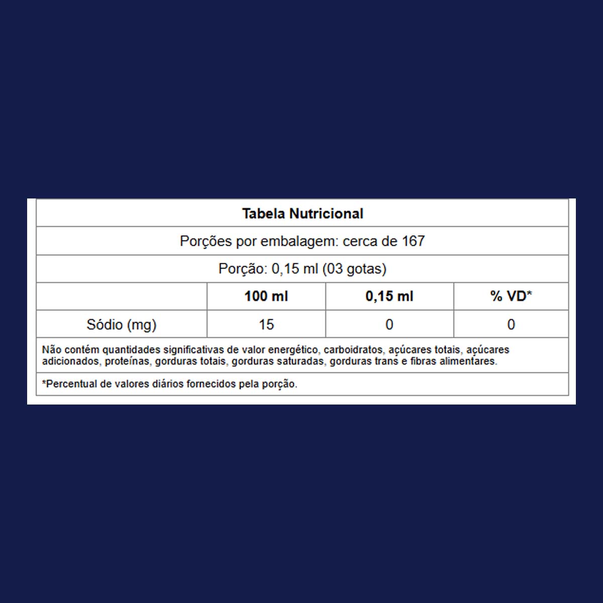 Porção: 0,15 ml (03 gotas)