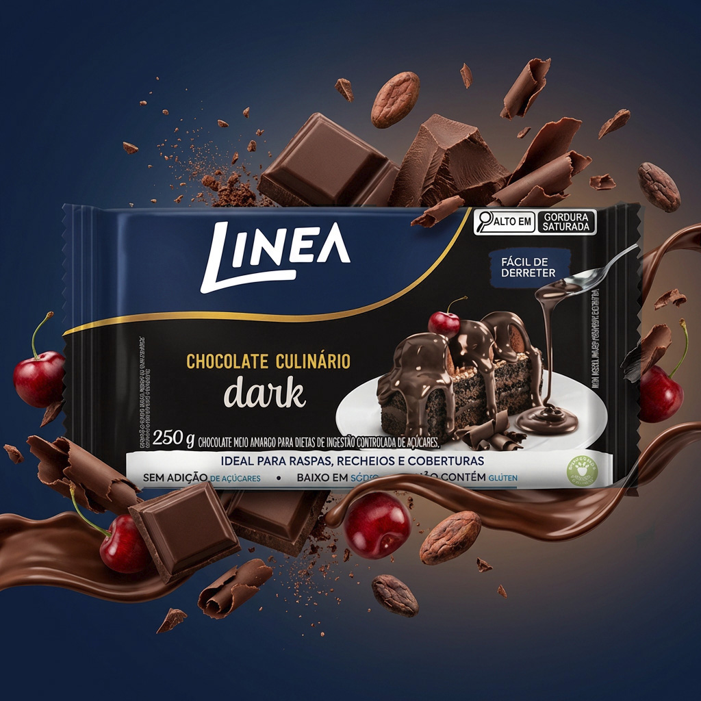 Linea Chocolate Culinário Dark 50% Cacau é fácil de derreter, ideal para raspas, recheios e coberturas. Com muito sabor, sem adição de açúcares, é adoçado com sucralose e maltitol. Baixo em sódio, não contém glúten. O chocolate para quem gosta de preparar suas receitas com facilidade!