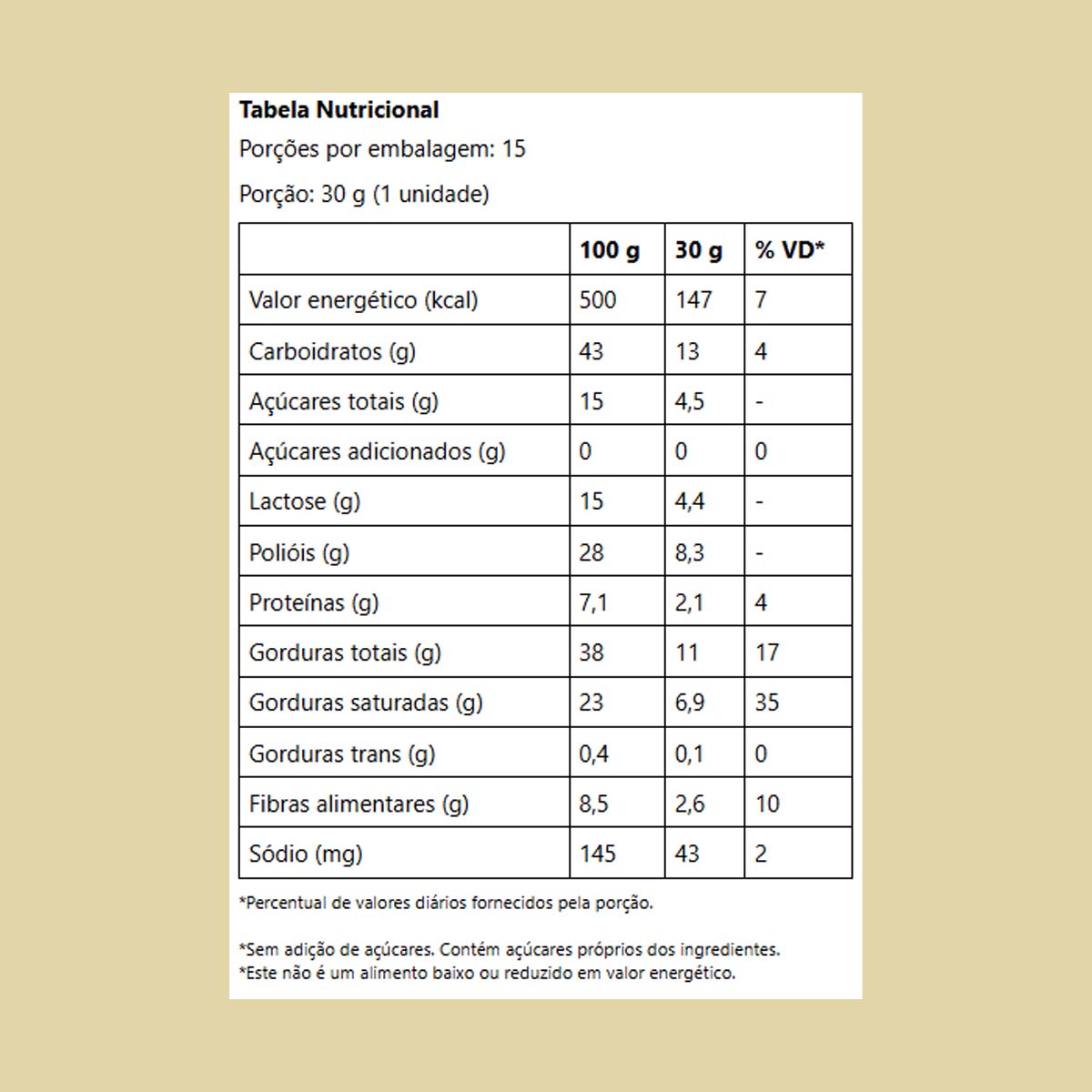 Porção: 30 g (1 unidade)