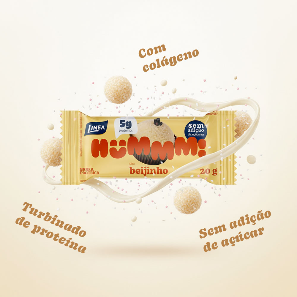 O Hummm! é o docinho proteico que une sabor e nutrição na medida certa. Com recheio sabor beijinho e cobertura branca, entrega 5g de proteína por unidade, colágeno na fórmula e zero adição de açúcar. Ideal para matar a vontade de doce sem sair da rotina.