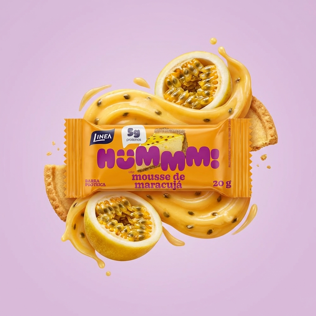 O Hummm! é o docinho proteico que une sabor e nutrição na medida certa. Inspirado na clássica sobremesa mousse de maracujá, combina o frescor do maracujá com a doçura da cobertura ao leite. Cada unidade entrega 5g de proteína, colágeno na fórmula e zero adição de açúcar, perfeito para matar a vontade de doce sem sair da rotina.
