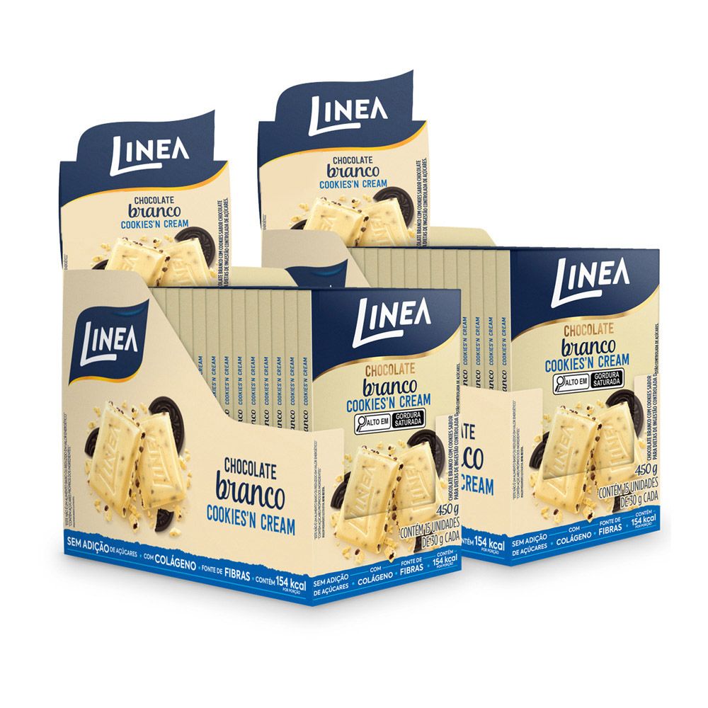 Kit 2 Displays de Chocolate Individual Linea Sabor Branco Cookies’n Cream 15 unidades de 30g