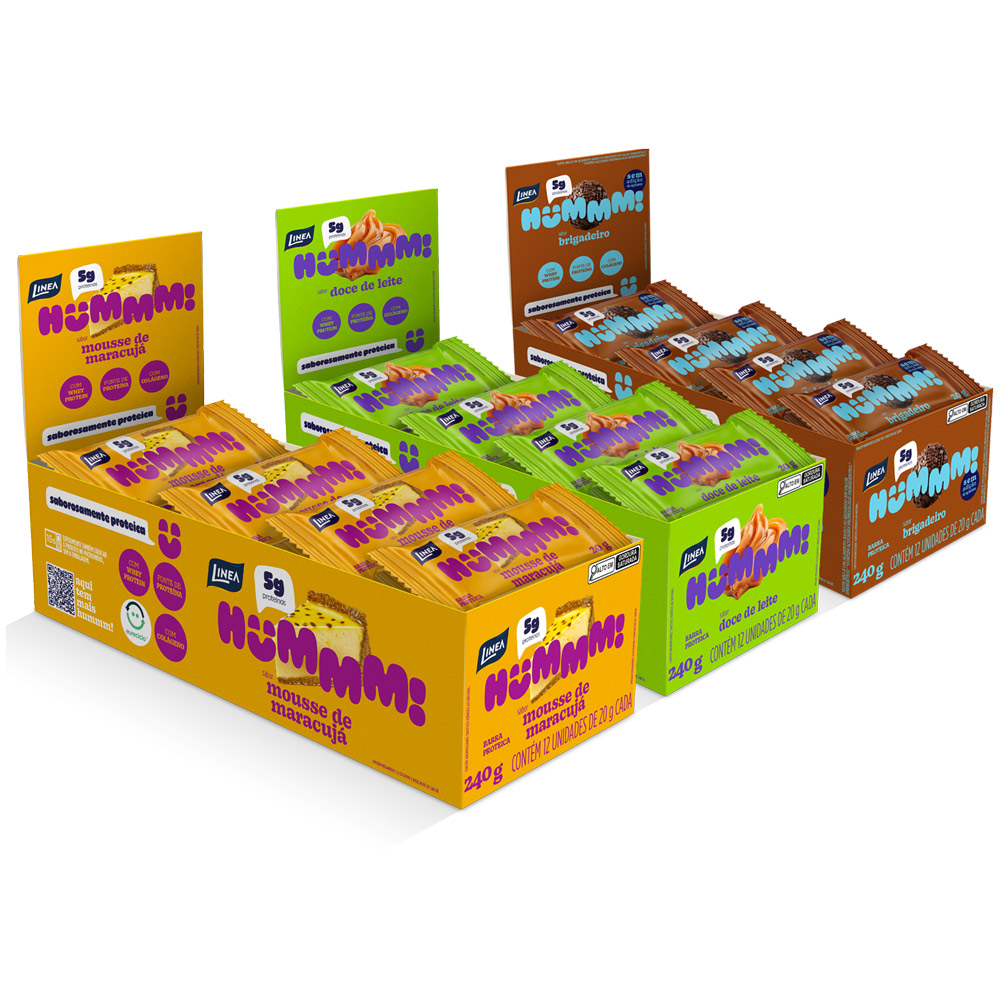 Kit 3 Displays Hummm! Snack Proteico Sabor Brigadeiro, Doce de Leite e Mousse de Maracujá - Caixa com 12 unidades