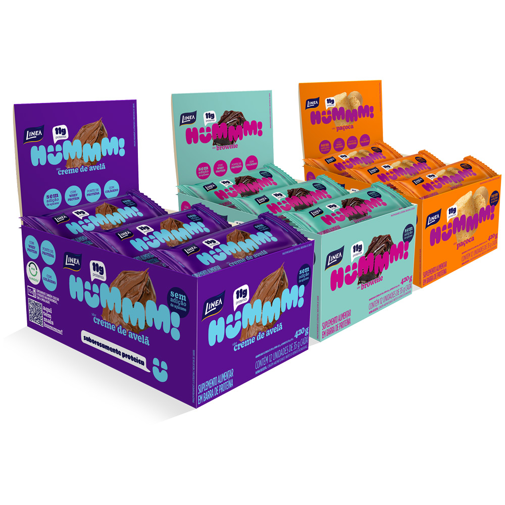 Kit 3 Displays Hummm! Snack Proteico Sabor Brownie, Creme de Avelã e Paçoca - Caixa com 12 unidades