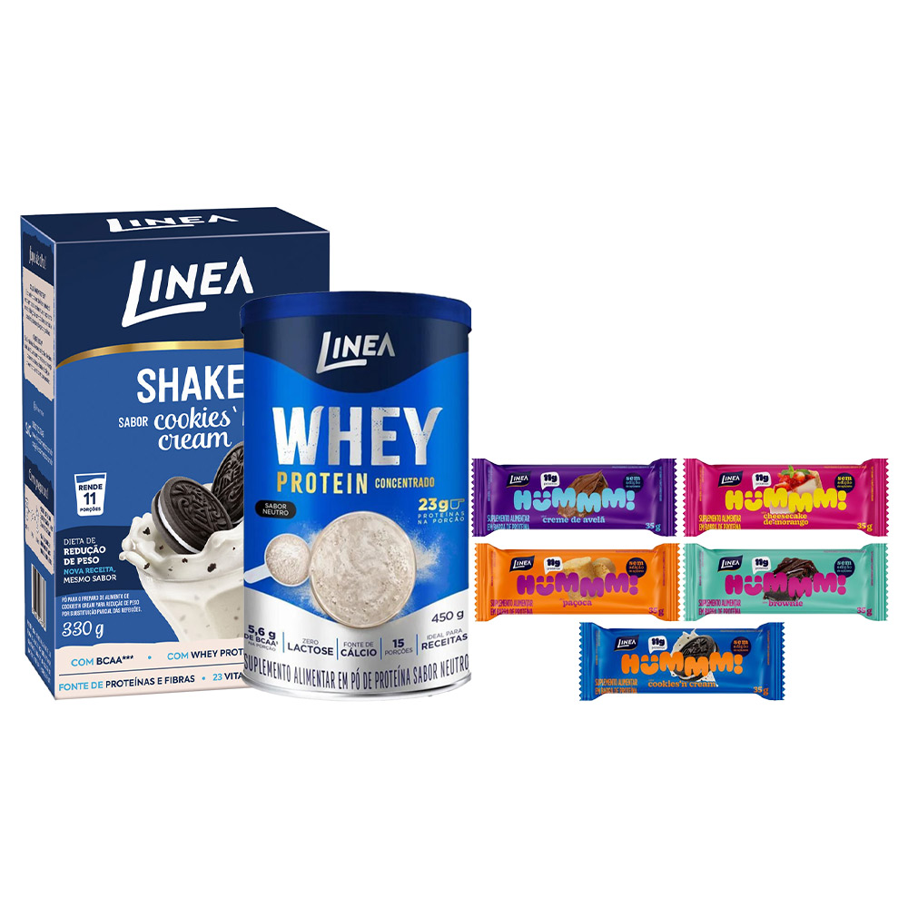 Kit Linha Linea: Whey Protein, Shake Cookies e Barras Hummm!