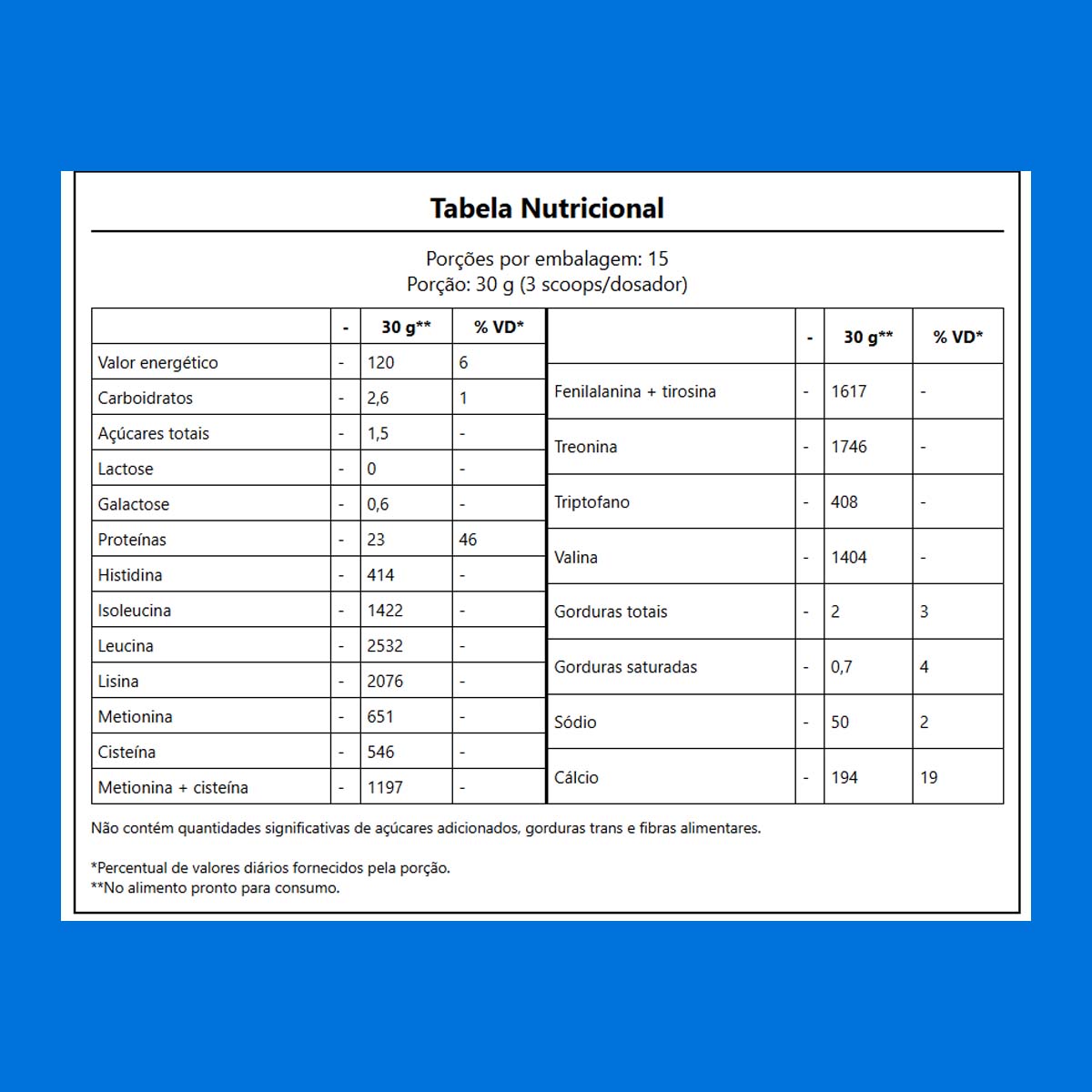 Concentrado proteico de soro de leite em pó zero lactose (whey protein). ALÉRGICOS: CONTÉM DERIVADOS DE SOJA E LEITE. NÃO CONTÉM GLÚTEN.