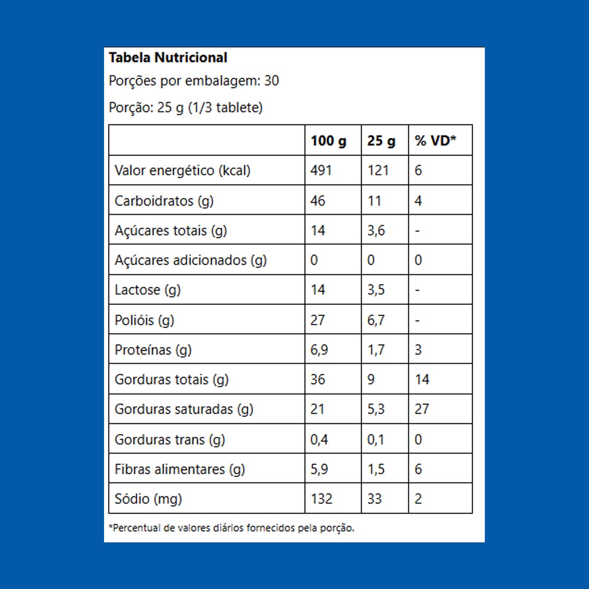 Porção: 25 g (1/3 tablete)